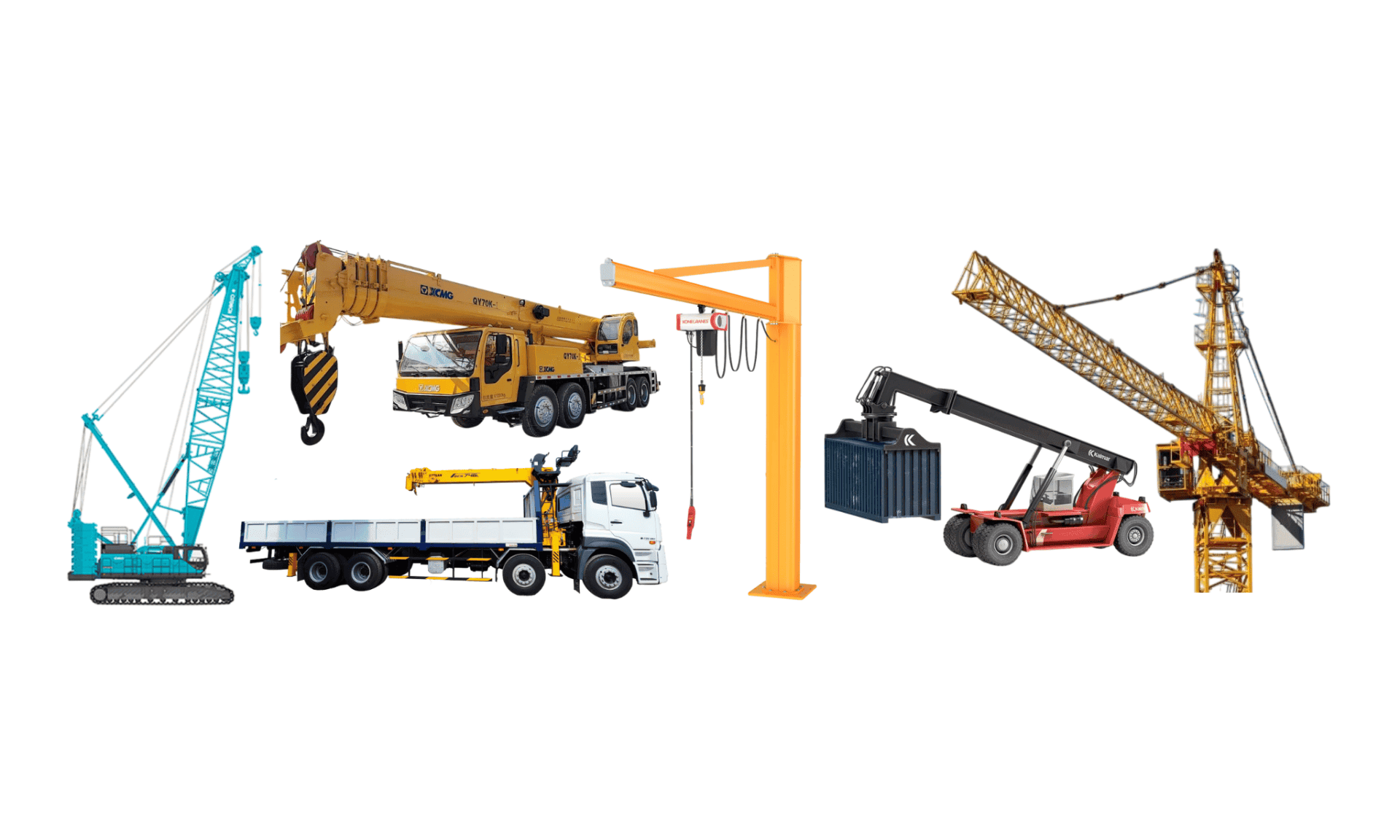 | Cẩu tự hành | 1...25 | Rất linh hoạt | Giao hàng, nâng vật liệu nhẹ |